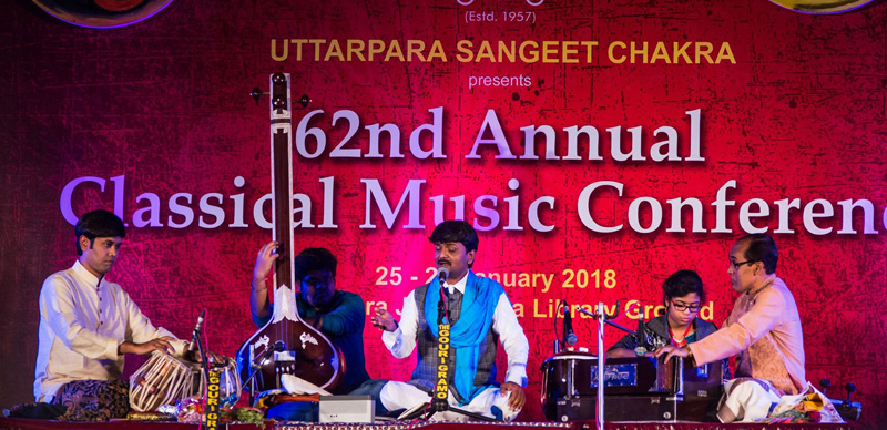 Yonug artiste Rupak Battacharya began the show with his viblant tabla recital. Rupak was very swift in his recital. His fingers moved with an aptalacrity required to play the 'Taals' he presented. He was provided an equally nice 'Lehara' on harmonium by Rajendra Prasad Banerjee. Rupak, besides playing the different variations of 'Teentaal' opted few of lesser popular 'Taals' via-a-vis 'Pancham Sawari' and like.